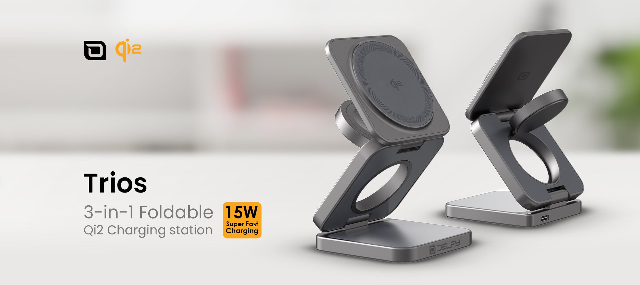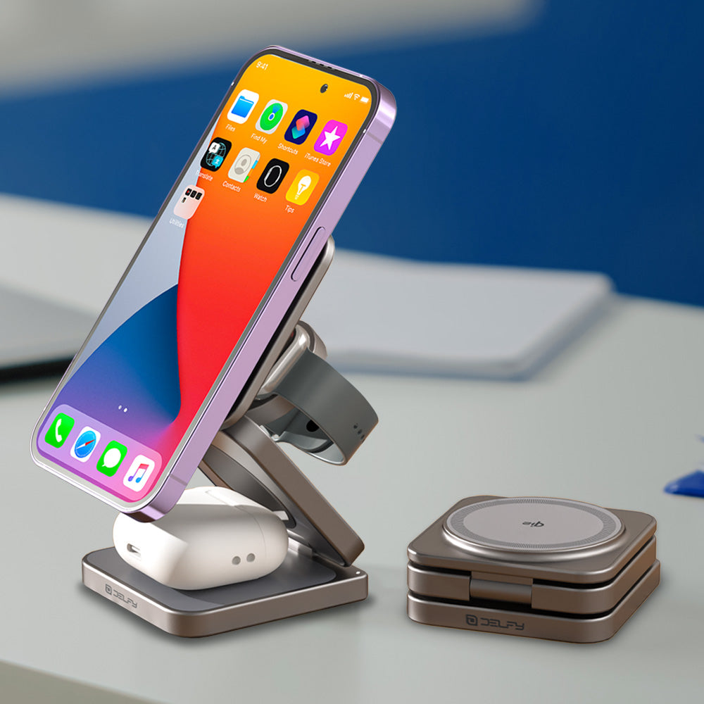 Delfy 3 in 1 Wireless Fast Charging Qi2 Foldable Magnetic Stand iPhone Airpods